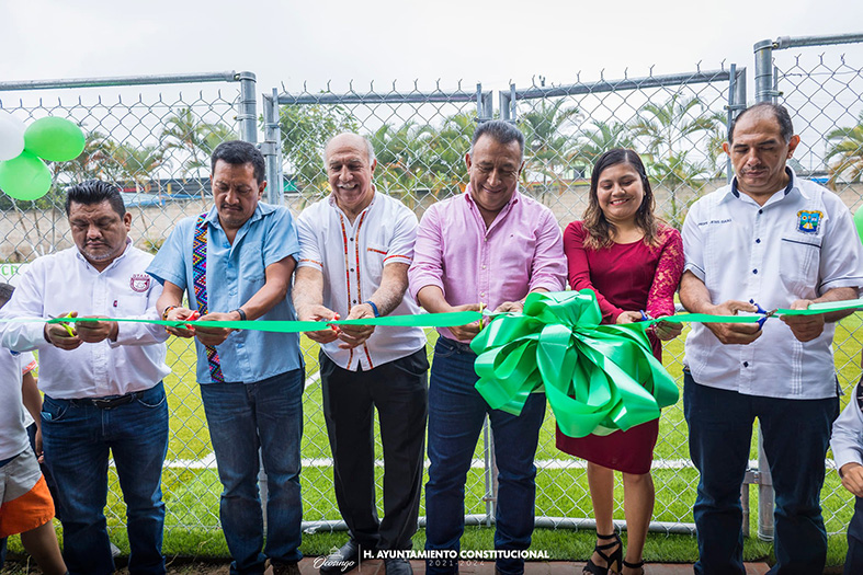 Contribuir con acciones que impulsen la convivencia social y juventudes ocupadas en las actividades deportivas, es el compromiso del presidente, Gilberto Rodríguez de los Santos quien acompañado de directivos, alumnas, alumnos y padres de familia, llevaron a cabo el corte del listón inaugural de la construcción de cancha de pasto sintético en este importante plantel educativo “A partir de hoy ustedes tendrán un lugar digno donde practicar deporte, actividad que brindará mejor salud fisica y mental, pero sobretodo que tengan buenos hábitos”, sostuvo el Alcalde. Acompañado del Director de la Escuela Primaria Prof. Victorino Trinidad Vázquez; Prof. Jesús Isaías Trujillo Domínguez, así como el Ing. Pedro Ramón Cruz Álvarez supervisor escolar entre otras personalidades.