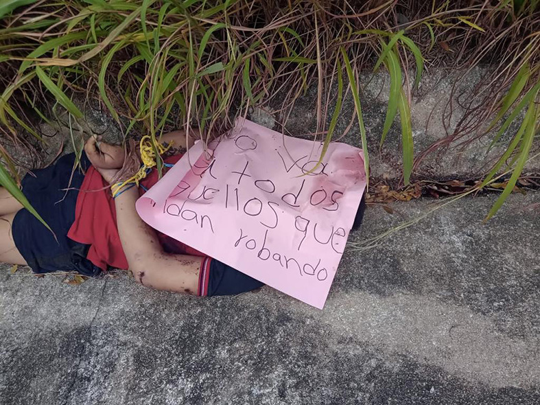 Vecinos de la zona carretera hicieron un macabro hallazgo, quienes reportaron el cuerpo de un hombre que estaba atado de pies y manos y con diversos impactos de bala, la mañana de este lunes. El hecho ocurrió en el tramo que comprende la zona de Rancho Bonito y El Cero, a un costado de la vía panamericana, en el cual los lugareños y automovilistas de la zona fueron quienes pidieron el apoyo de las fuerzas de seguridad. En este sentido, arribaron hasta el lugar de los hechos agentes de las policías Municipal, Estatal Preventiva, de Investigación de la Fiscalía General del Estado (FGE) y elementos de la Secretaría de la Defensa Nacional. Las diversas corporaciones se encargaron de acordonar la zona y cerrar por completo la ruta en espera de las autoridades competentes, a fin de evitar la presencia de curiosos en el sitio. De acuerdo a fuentes extraoficiales, el hombre presentaba signos de tortura, estaba atado de pies y manos, además de que tenía diversos impactos de bala sobre el cuerpo. Asimismo, se informó que estaba boca abajo y que sobre su espalda tenía un mensaje escrito sobre una cartulina con la frase “eso le va pasar a todos los que andan robando”. Hasta el sitio arribaron, minutos después, agentes de los Servicios Periciales para llevar a cabo el levantamiento del cadáver, el cual fue llevado al Forense, en tanto se espera que la FGE dé inicio a las investigaciones, a fin de poder dar con la identidad de la persona asesinada y lograr el esclarecimiento de este hecho.