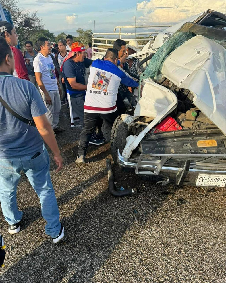 Un grupo de peregrinos originarios del municipio de Tila que se transportaba a bordo de un camión tipo torton sufrieron un apara­toso accidente esto luego de que una camioneta se impactara contra dicha pe­sada unidad, en un hecho ocurrido en la vía que co­necta a este municipio con Villaflores.