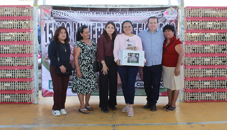 El alcalde de Villaflores Mariano Rosales Zuarth realizó la cuarta entrega de aves de postura en el ejido Cuauhtémoc, en compañía de su hija Valeria Rosales, y de las representantes de grupos de trabajo Celina Solís Ruíz y Arminda de la Cruz, en total se entregaron de 7300 aves, beneficiando a 730 mujeres del ejido sede Cuauhtémoc, Ranchería el Recuerdo 1 y 2 y Esfuerzo Campesino.