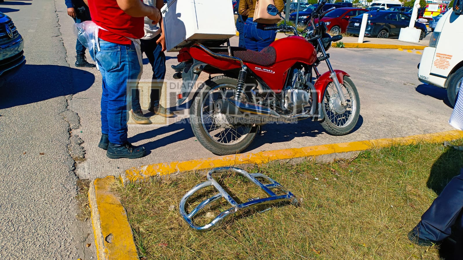 El conductor del vehículo Jetta gris con placas de Chiapas DPD968E argumentó que continuó su marcha, pues otro chofer le cedió el paso, pero no se percató de la motocicleta que venía saliendo y terminó impactado en la unidad.