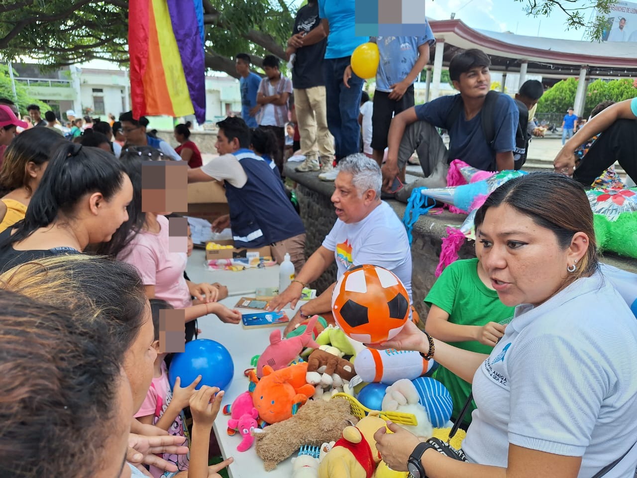 TAPACHULA,Chis.,18 de diciembre de 2023.-La organización Una Mano Amiga en la Lucha contra el Sida, se solidarizó con la comunidad migrante y acudió al Parque “Bicentenario para regalar alimentos y juguetes a menores en movilidad.