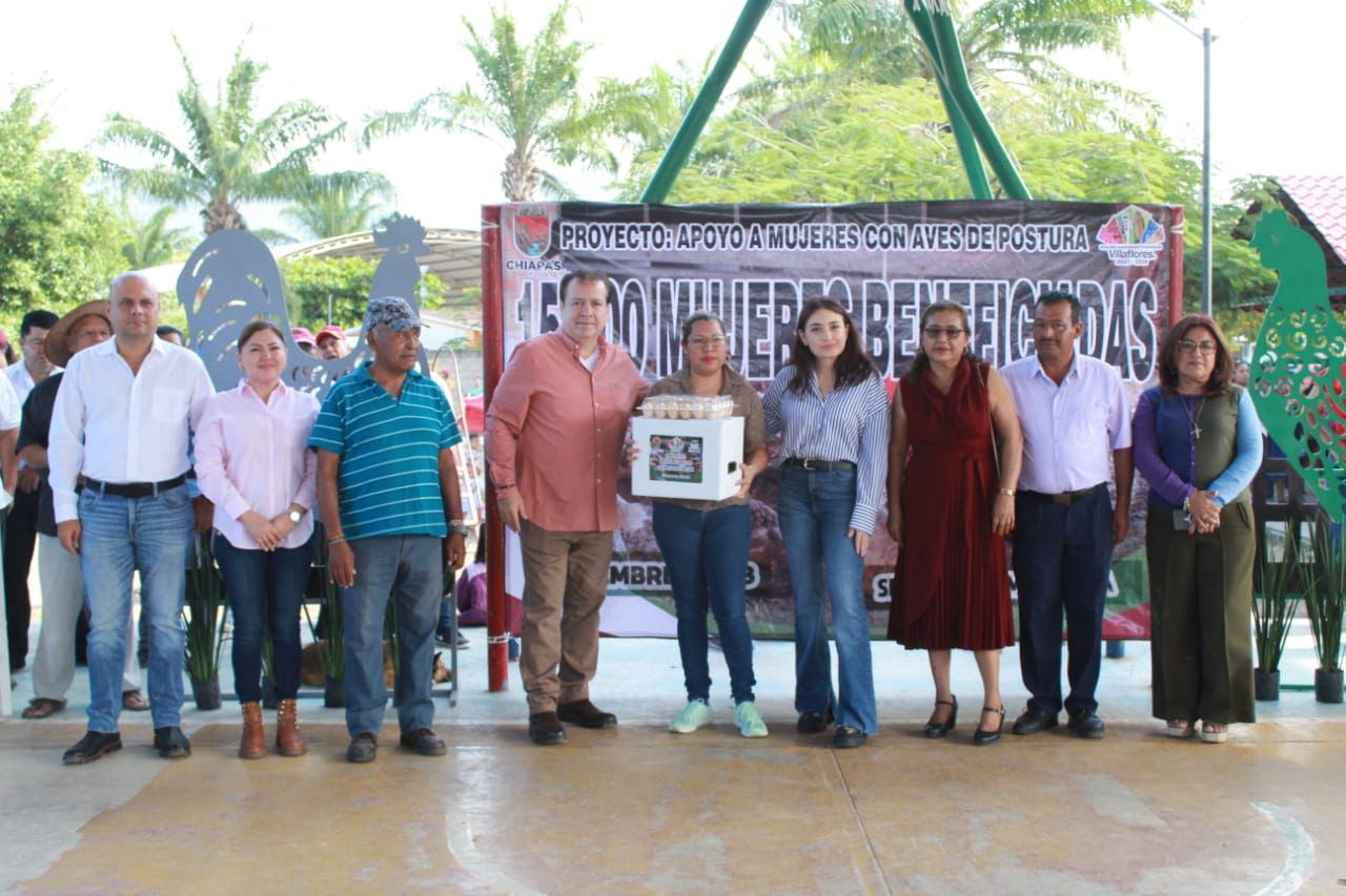 El alcalde de Villaflores, Mariano Rosales Zuarth, acompañado de la presidenta de la fundación «Marianito Rosales», Valeria Rosales Sarmiento, la comisariada ejidal Adela Ruiz Borraz, el agente municipal Marcos Hernández Nangüelú y regidores, realizó la octava entrega de aves de traspatio en el ejido Jesús M Garza, en donde se beneficiaron a 1,730 mujeres con 17, 300 aves.