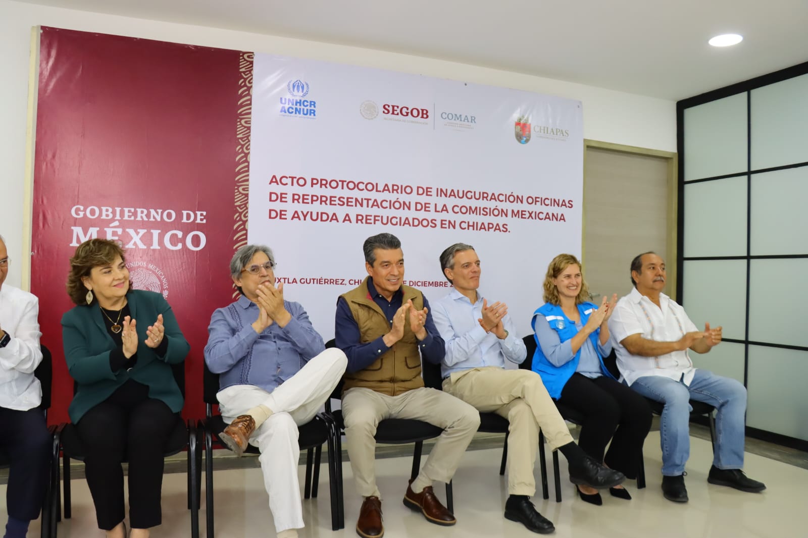 En la inauguración de las oficinas de la Comisión Mexicana de Ayuda a Refugiados (Comar), en Tuxtla Gutiérrez, el gobernador Rutilio Escandón Cadenas destacó las inversiones y el esfuerzo conjunto que han establecido los Gobiernos Estatal y Federal para garantizar seguridad, atención humanitaria y el respeto de los derechos humanos de las personas migrantes que transitan por la frontera sur.
