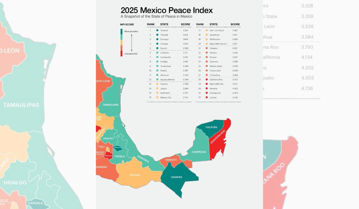 A pesar de mantener un lugar alto en el ranking nacional de paz general, Chiapas fue uno de los estados con mayor deterioro en sus niveles de paz en 2024, según el Índice de Paz México 2025. El informe revela que la violencia se recrudeció de manera preocupante, con incrementos significativos en homicidios, desapariciones y asesinatos políticos.
