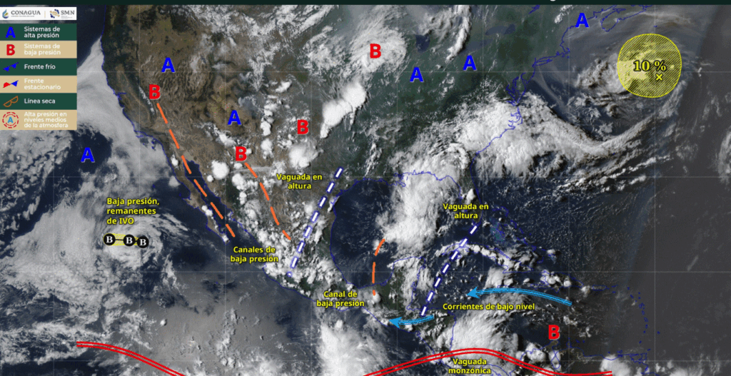 De acuerdo con el pronóstico del Servicio Meteorológico Nacional, las condiciones fueron propiciadas por el ingreso de humedad y el desarrollo de sistemas de baja presión y vaguadas, que interactuaron con el monzón mexicano y generaron un patrón de tormentas en buena parte del país.