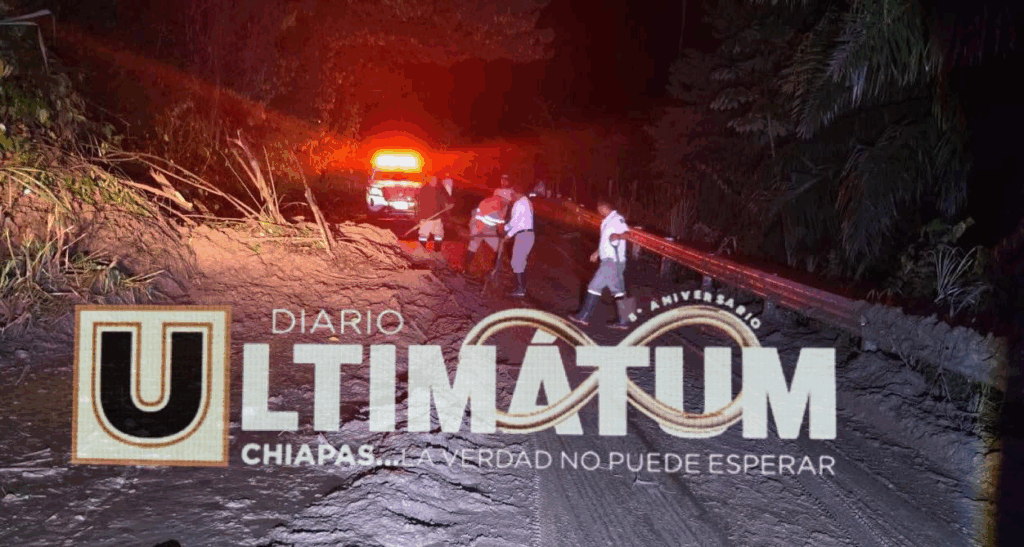 Las intensas lluvias de las últimas horas provocaron un deslave en la carretera Palenque–Ocosingo, a la altura de la comunidad Saquil Ulum, cerca del crucero Agua Azul, lo que interrumpió la circulación desde la madrugada de este martes.