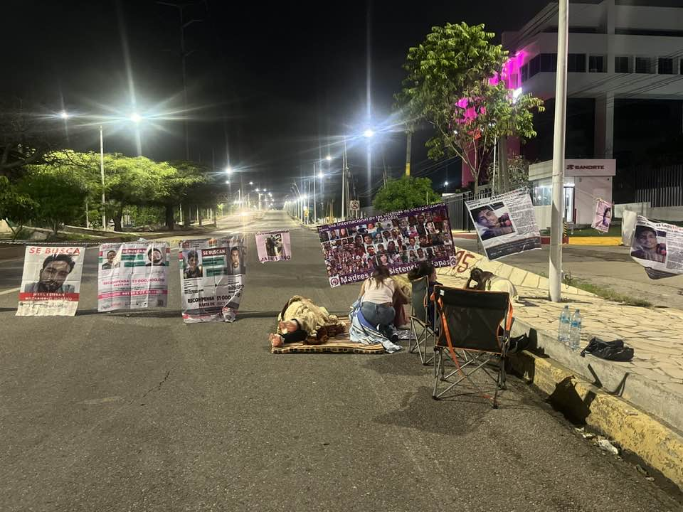 Integrantes del colectivo Madres en Resistencia, conformado por familiares de víctimas de feminicidio y desaparición en Chiapas, cumplieron este jueves cuatro días consecutivos de plantón frente a la Fiscalía General del Estado (FGE), bloqueando el Libramiento Norte de Tuxtla Gutiérrez. Las manifestantes exigieron la presencia del alcalde Ángel Torres para que explique quién ordenó el operativo de desalojo violento ocurrido el martes pasado.