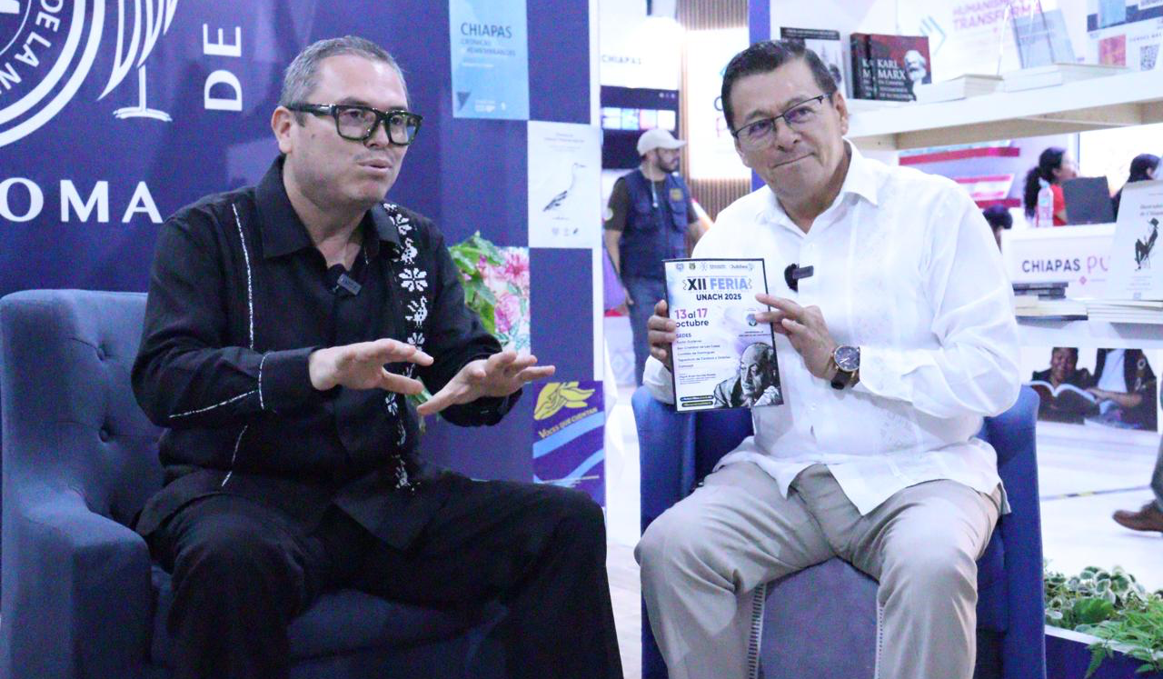 Durante la entrevista realizada por Amet Samayoa Arce y Eric Ordóñez, director y subdirector de Diario Ultimátum, el rector subrayó que este año la feria cuenta con más de 400 actividades programadas en distintas sedes, distribuidas en cinco días de presentaciones, conferencias, conversatorios, conciertos y talleres. “Es imposible asistir a todas, pero lo importante es que cada edición crece y ofrece más opciones a la ciudadanía. Esta feria ya es una tradición en Chiapas y un espacio de encuentro para todas las expresiones del conocimiento”, afirmó.