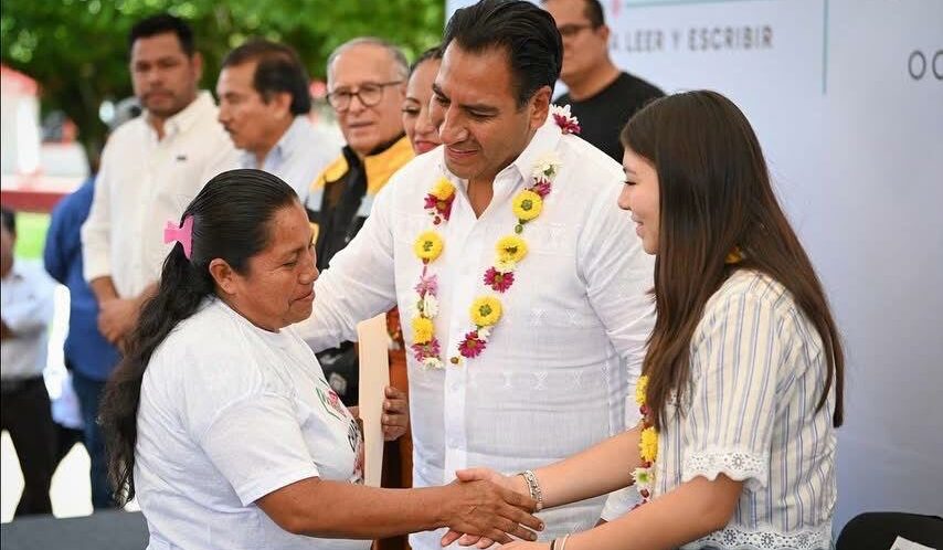 El secretario de Educación, Roger Mandujano Ayala, informó que en el municipio se entregaron 250 becas a personas inscritas en el programa de alfabetización Chiapas Puede, destacando el esfuerzo de quienes asistían a sus círculos de estudio.