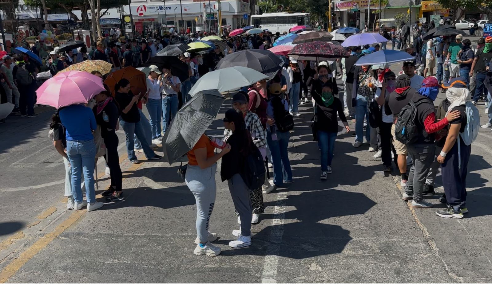 Estudiantes y maestros interinos de la Escuela Normal Superior de Chiapas se manifestaron ayer en la capital y bloquearon el cruce de la avenida y la calle central, lo que provocó un intenso caos vial en el primer cuadro de la ciudad durante cerca de cuatro horas.