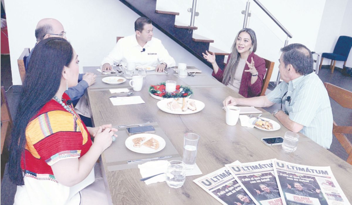 El Diario Ultimátum reunió este lunes a la presidenta del Congreso del Estado, Alejandra Gómez Mendoza; a Juan Carlos Gómez Aranda, coordinador de Asesores y Proyectos Estratégicos del Gobierno del Estado; a la politóloga Marvin Arriaga, y al periodista Ricardo del Muro, para analizar el Primer Informe de Gobierno de Eduardo Ramírez Aguilar.