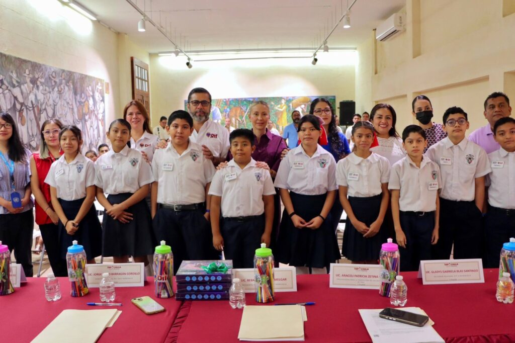 La presidenta honorífica del SDIF Tapachula, Beba Pedrero, resaltó que esta iniciativa, impulsada por los Sistemas DIF Nacional, Estatal y Municipal, fomenta la intervención de la niñez en la promoción y defensa de sus propios derechos, motivando a las nuevas generaciones a expresar sus ideas y a convertirse en agentes de cambio, porque escuchar a las infancias es sembrar un mejor futuro.