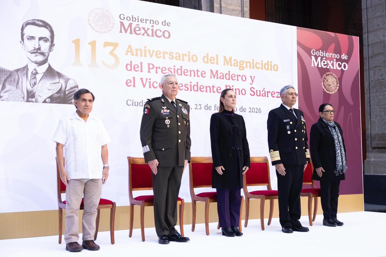 La Presidenta de México, Claudia Sheinbaum Pardo, encabezó la ceremonia por el 113 Aniversario del magnicidio del presidente Francisco I. Madero y del vicepresidente José María Pino Suárez en el Patio de Honor de Palacio Nacional.