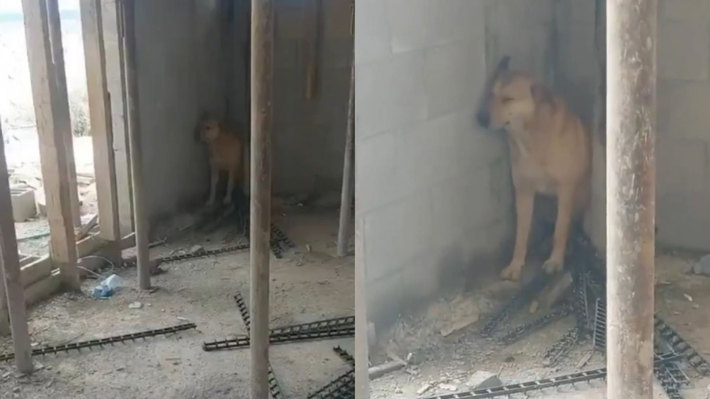 En el clip de tan sólo 20 segundos, se observa al can rodeado de escombros, en el rincón de un inmueble, ubicado en la ciudad palestina de Qalqilya, con los ojos cerrados y recargado en la pared, mientras las sirenas advierten sobre posibles bombardeos en el área.