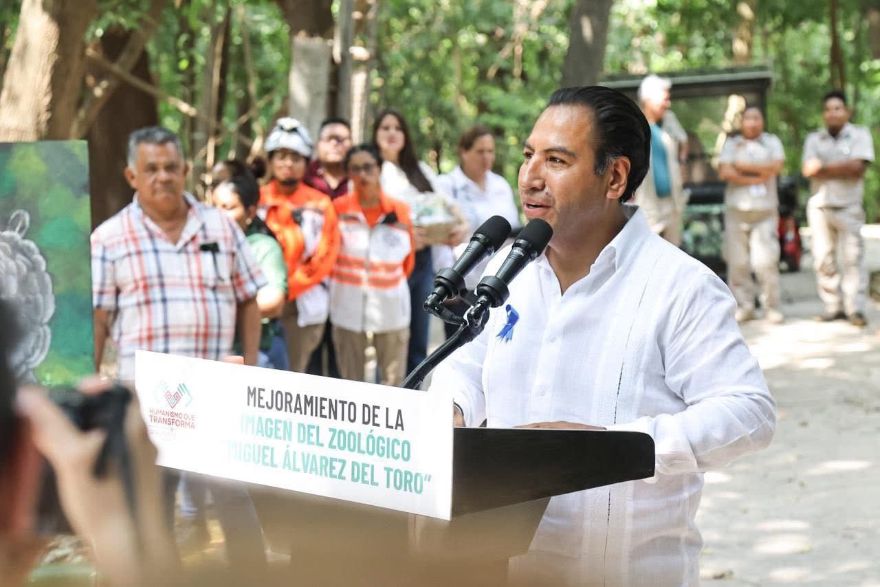 El gobernador Eduardo Ramírez Aguilar encabezó la inauguración de las obras de mejoramiento de la imagen del ZOOMAT Centro de Conservación y Reserva Natural, en Tuxtla Gutiérrez, el cual adoptó este nombre tras un análisis profundo orientado a reforzar la identidad de este emblemático espacio y fortalecer su misión de proteger y difundir la riqueza natural de Chiapas.