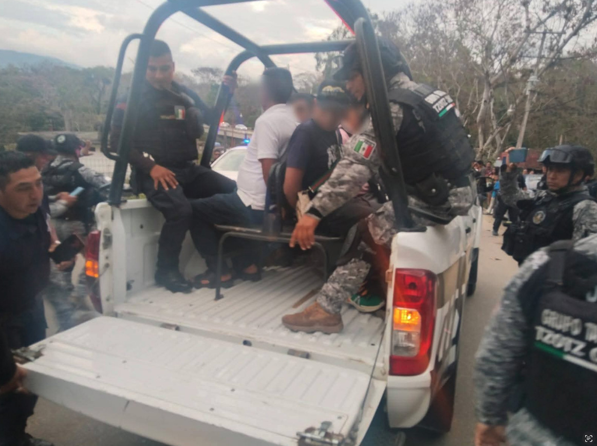 De acuerdo con información de pobladores, al menos ocho hombres que se trasladaban en la unidad oficial fueron detenidos a la altura del balneario Jataté y puestos a disposición de la autoridad competente para determinar su situación jurídica.