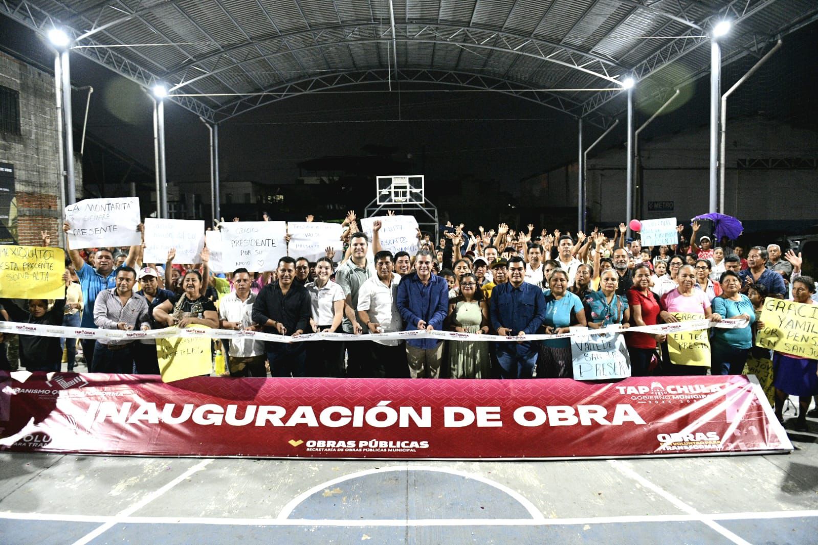 Tapachula, Chiapas.– Habitantes de la colonia San Juan reconocieron y agradecieron al presidente municipal, Yamil Melgar, por la entrega del techado en la cancha de usos múltiples, obra que beneficia directamente a más de 2,200 personas y cuya inversión supera los dos millones de pesos, a través del FAISMUN 2025.